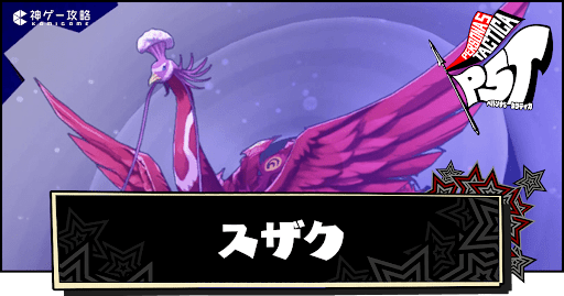 ペルソナ5タクティカ(P5T)のペルソナ「スザク」について紹介。スザクの性能や固有スキル、出現場所や合体での作成方法についても掲載しているため、P5Tをプレイする際の参考にどうぞ。