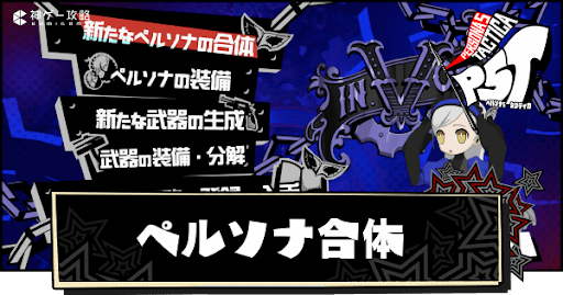 ベルベットルーム及びペルソナ合体は、ストーリー第8回をクリアすると解放できる。ペルソナを作成しサブペルソナとして装備させるとその後の攻略が楽になるため、解放後は適宜ペルソナを増やしていこう。