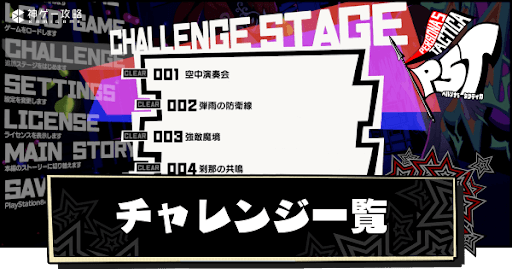 ペルソナ5タクティカ(P5T)のチャレンジステージの攻略を一覧で掲載。チャレンジステージのルールに加え、解放条件や報酬についても掲載しているので、『ペルソナ5タクティカ』をプレイする際の参考にどうぞ!