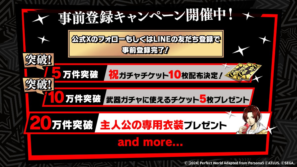 P5X日本版のリリースを記念して、事前登録キャンペーンが開催中だ。事前登録者数に応じてリリース時に受け取れる報酬が追加されていくため、プレイする予定がある人は事前登録をしておこう。事前登録は、公式XのフォローまたはLINEの友だち登録をすると完了となる。