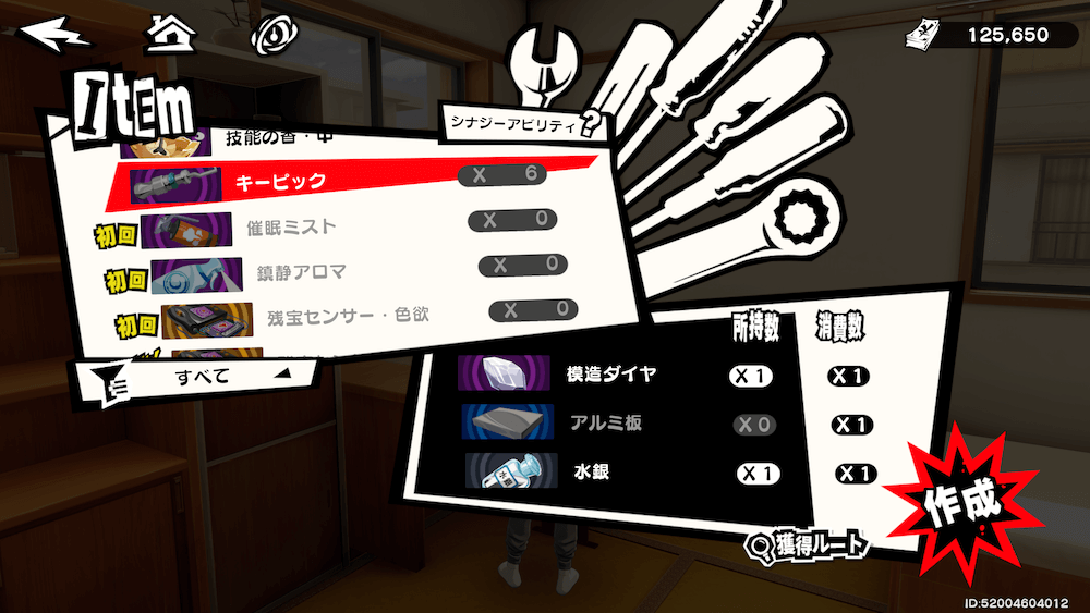 | ランク4 | ミヤザワパレスの途中で現実に戻った際中級製作レシピ 作成できる『残宝センサー』『潜入道具』『プレゼント』が増える |