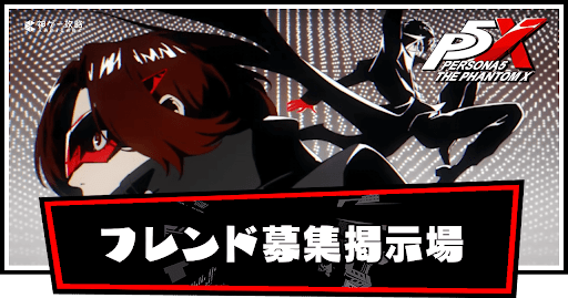 P5X(ペルソナ5X)のフレンド募集掲示板です。ペルソナ5:The Phantom Xでフレンドを募集する際にご利用ください。