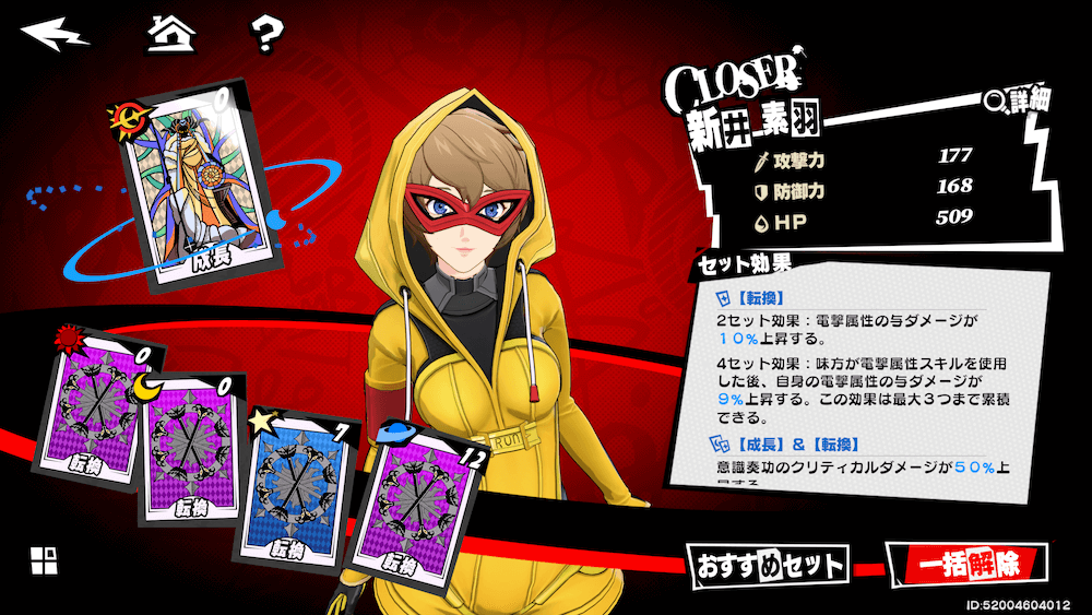 | ペルソナ強化 | ・装備するペルソナで主人公が強化 ・ペルソナは同時に3体まで装備可能 ・高レア/高ランク程性能が高くなる |