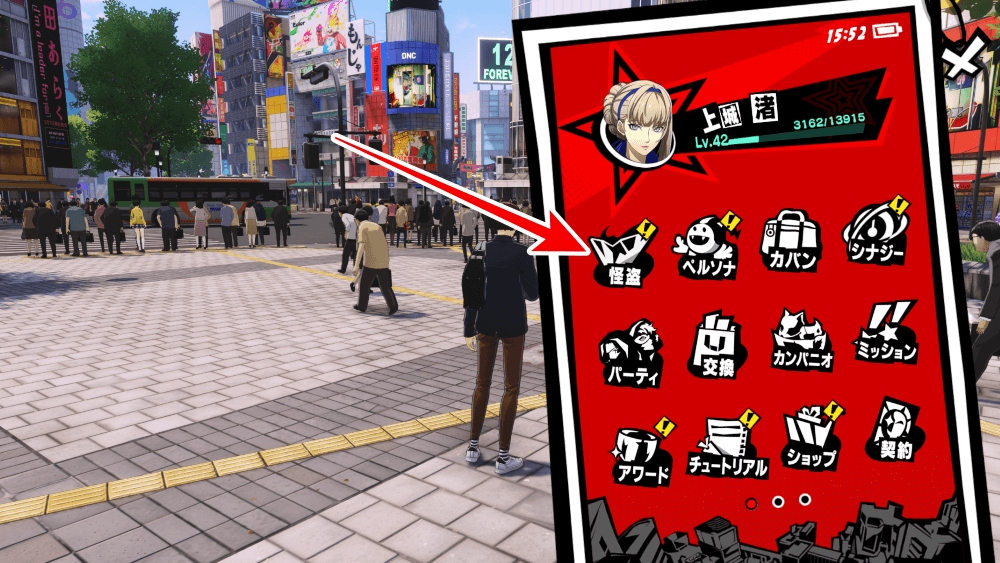 ゲーム画面右下にあるスマホアイコンをタップして、スマホ画面を開く。スマホ画面から、怪盗アイコンを選択して怪盗一覧画面を開こう。