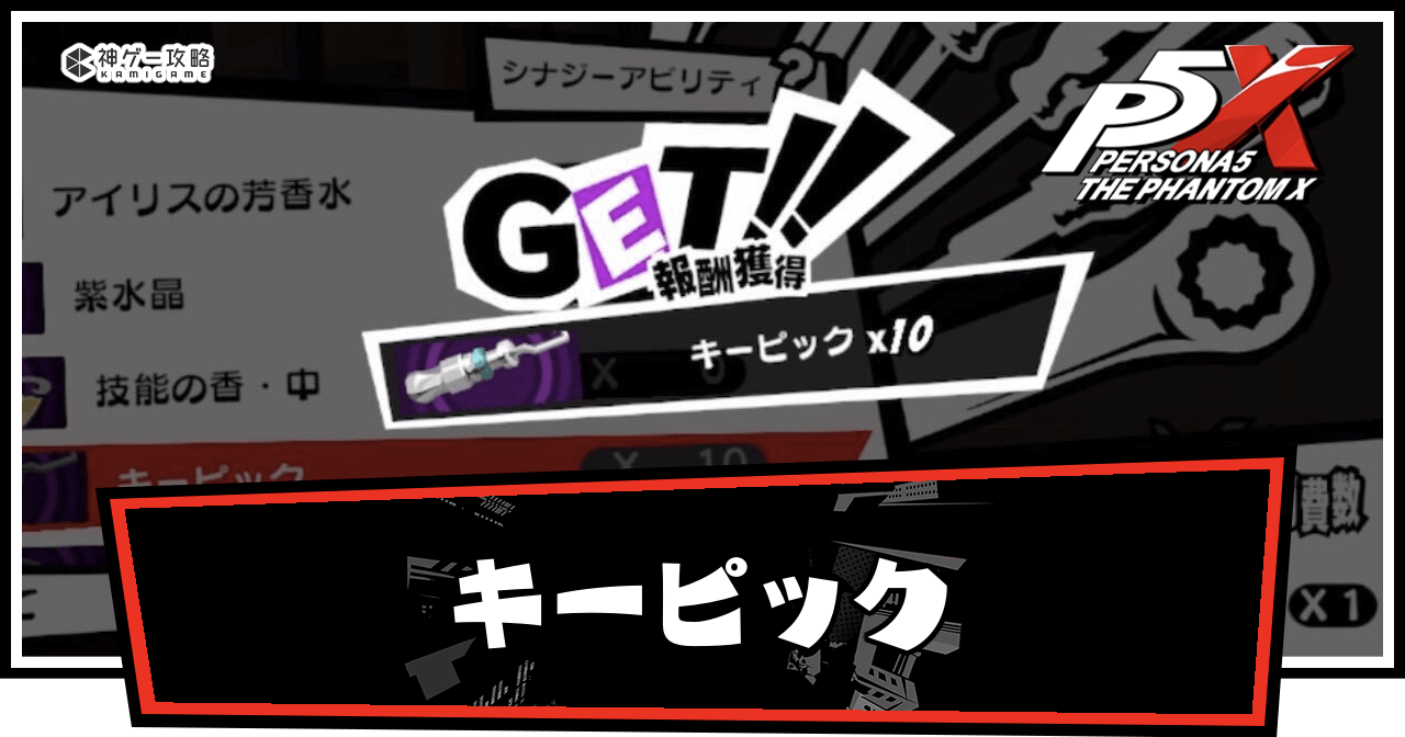 P5X(ペルソナ5X)のキーピックについて解説。キーピックの入手方法や必要素材の購入場所、についても掲載しているので、ペルソナ5:The Phantom Xをプレイする際の参考にどうぞ。