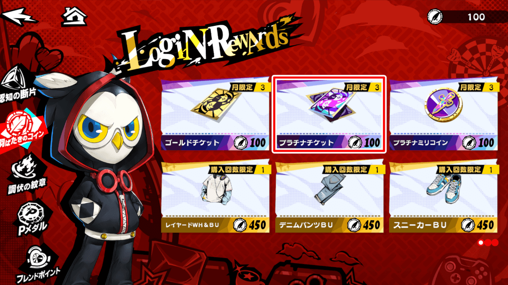 | 4 | 羽ばたきのコインでプラチナチケットを交換 |
