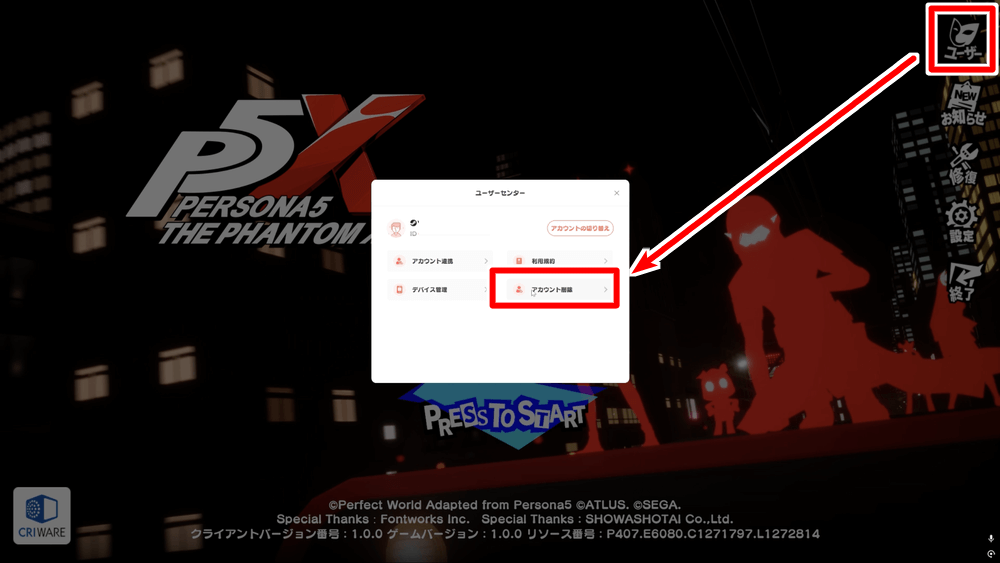 ログアウト後は、開始メニュー右上のユーザーボタンからアカウント削除を選ぼう。データを消去すれば、最初の手順からリセマラをやり直せる。