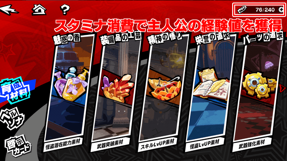 リセマラを終えたら、主人公のレベルを上げてイベント「怪盗団集結」などでゴールドチケットを集め、新米怪盗サポートガチャの天井で星5キャラを交換しよう。星5キャラはいずれも優秀なスキルを持つため、入手したら怪盗メニューから育成し、使用感を確かめてみるのがおすすめだ。