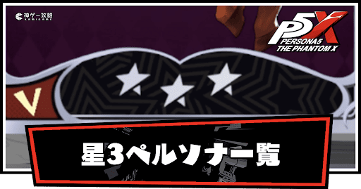 ペルソナ5X(P5X)の星3ペルソナを一覧で紹介。主人公が使用するペルソナの弱点や耐性、ロール、特性について掲載。ペルソナ5Xをプレイする際の参考にどうぞ。