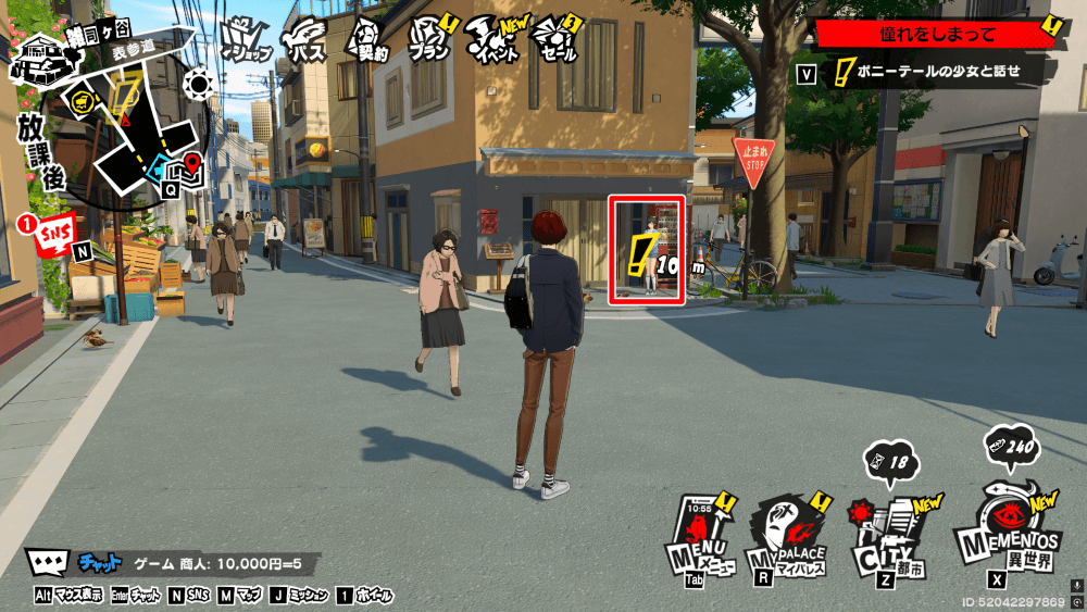 サイドクエスト「憧れをしまって」は、雑司ヶ谷の表参道にいるポニーテールの少女に話しかけると開始される。ストーリー「夢の跡」の進行で、クエストが開放できるようになる。