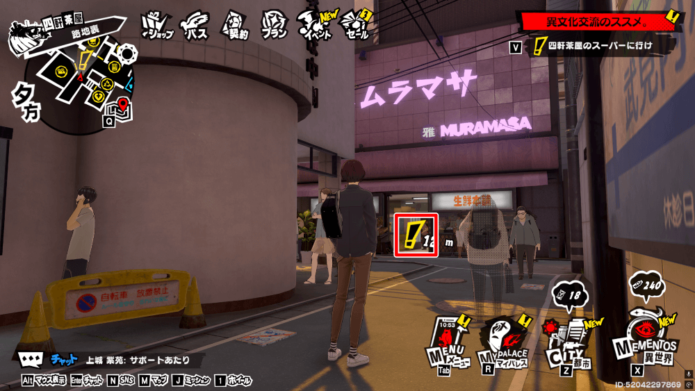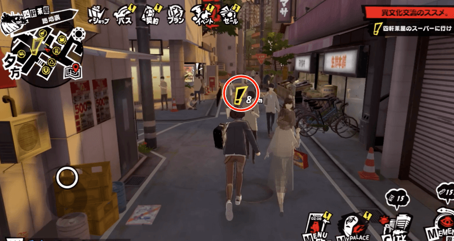 サイドミッション「異文化交流のススメ。」は、四軒茶屋の路地裏に向かうと発生する。メインミッションの「夢の跡」を進めていると開放条件が達成できるため、まずはストーリーを進めると良い。