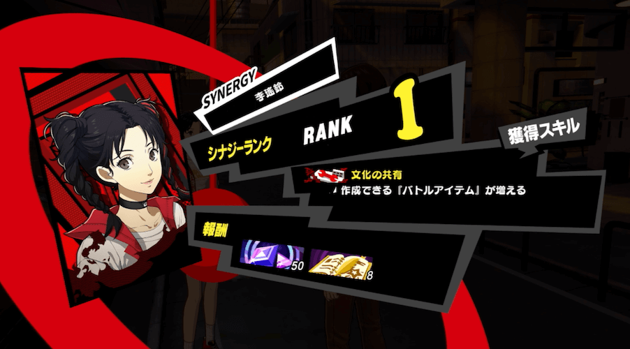 「異文化交流のススメ。」をクリアすると、李瑶鈴のシナジーを解放できる。李瑶鈴のシナジーは作成できるバトルアイテムや中華料理のレシピが増えるメリットがある。