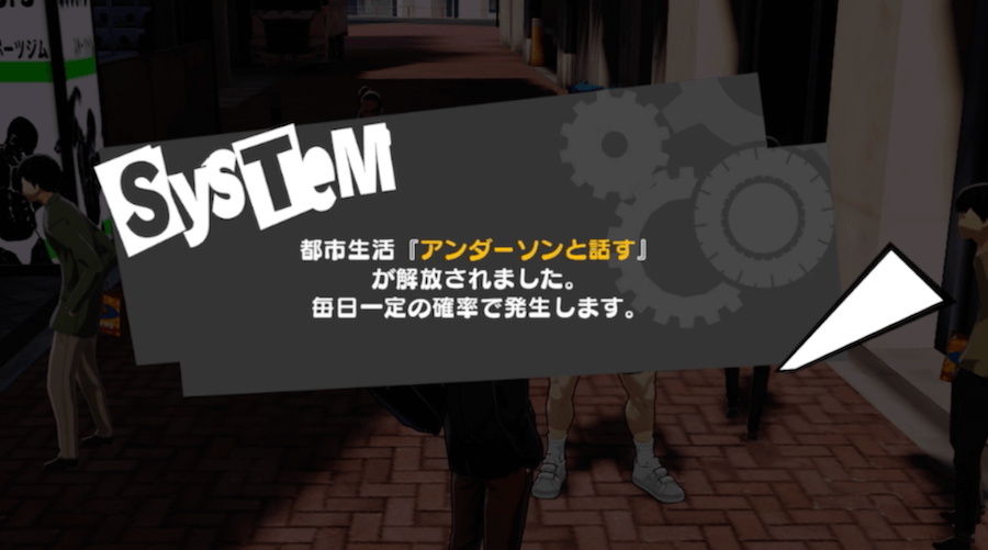 「筋肉の声が聞こえる」をクリアすると、アンダーソンと会話して過ごすイベントが発生するようになる。イベントの発生は一定確率で発生し、参加するかどうかは自由に選択できる。