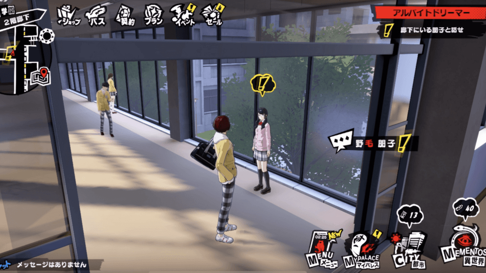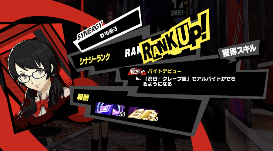 サイドミッション「アルバイトドリーマー」は、野毛朋子との会話のみでクリアできる。クリア後は野毛朋子のシナジーが解放される。