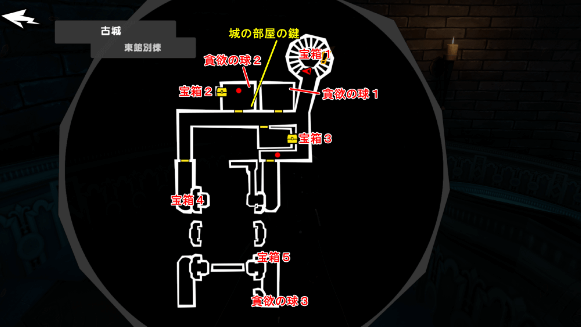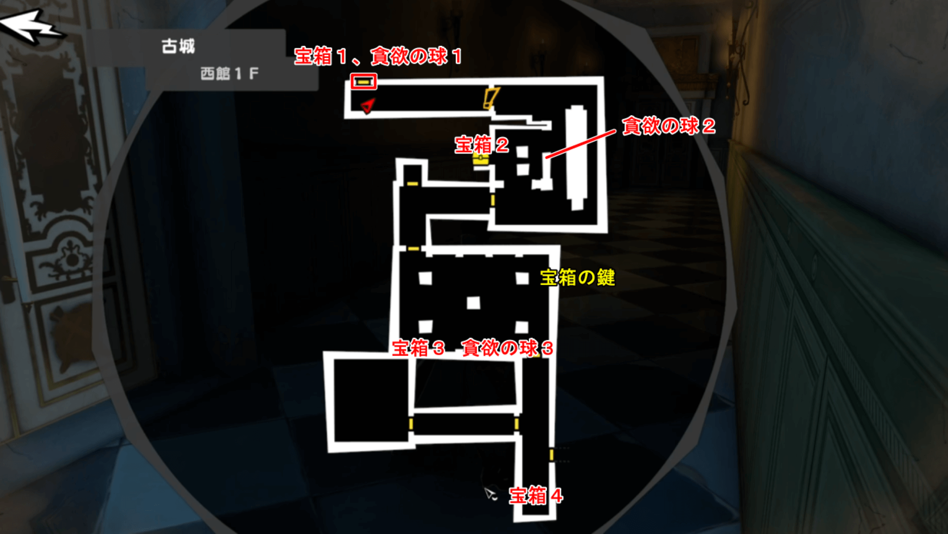 宝箱1,貪欲の球1スタートしてすぐ左の扉 |