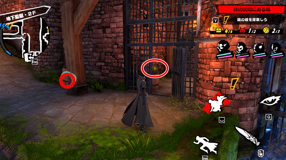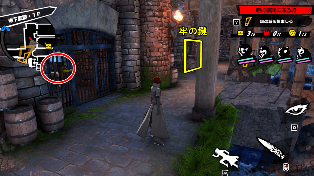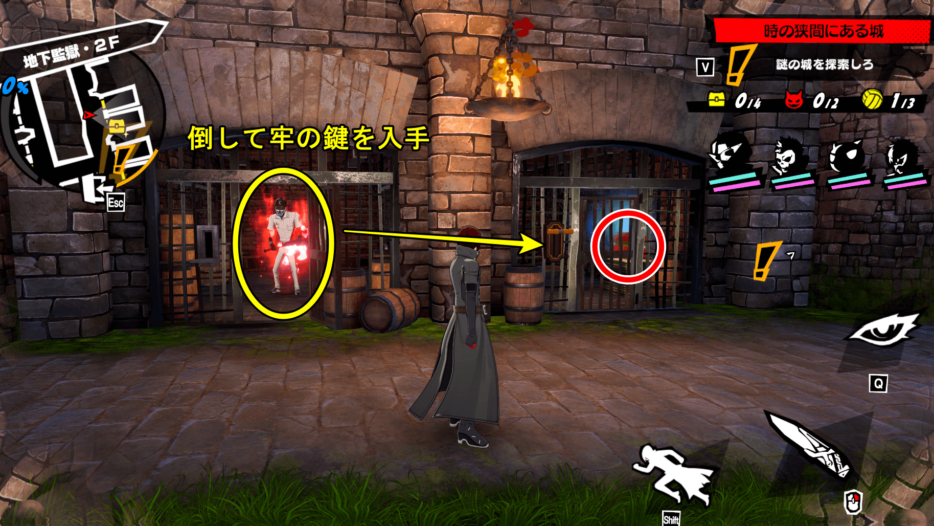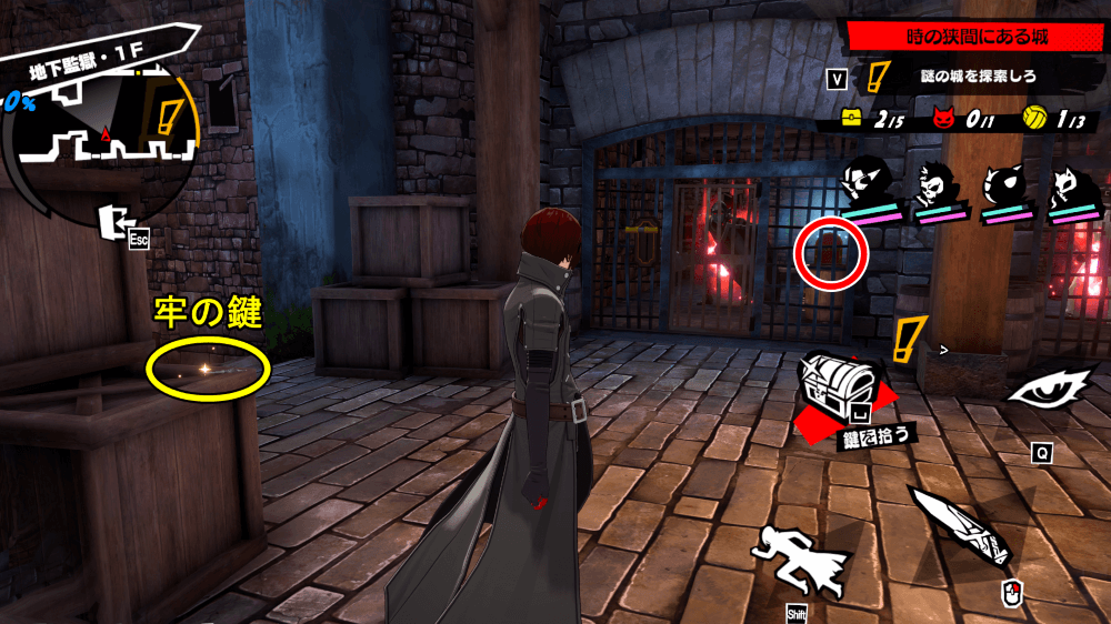 宝箱1隣の牢屋にいる敵を倒して鍵を入手 |