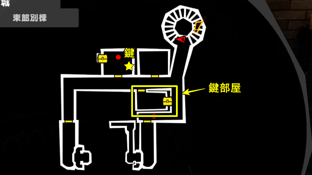 探索度を100%にするには、鍵を入手して隠し部屋を開ける必要がある。マップの東側で鍵を入手したら、来た道を戻って中央付近にある隠し部屋を開けよう。