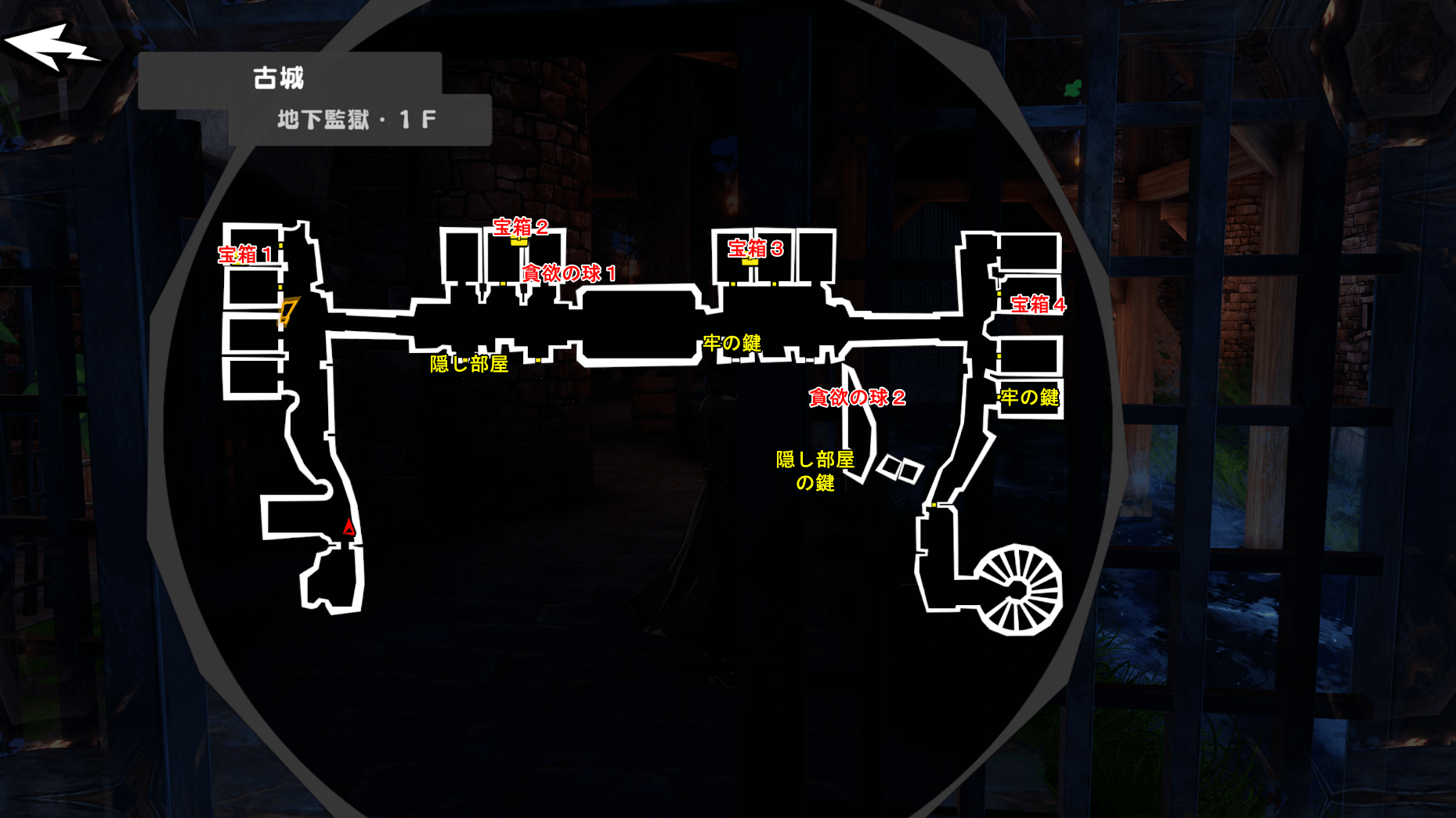 貪欲の球1最初の通路の突き当りにある牢屋内 |