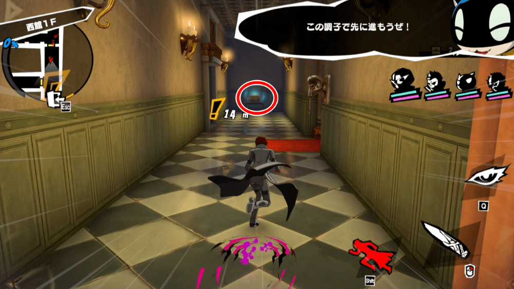 1-13では、ボスを総攻撃で倒すとチャレンジミッションの報酬を獲得できる。ボスは電撃・念動・祝福が弱点属性のため、ボスのHPが減ってきたら弱点属性を持つキャラやペルソナでダウンを取り、総攻撃を仕掛けよう。