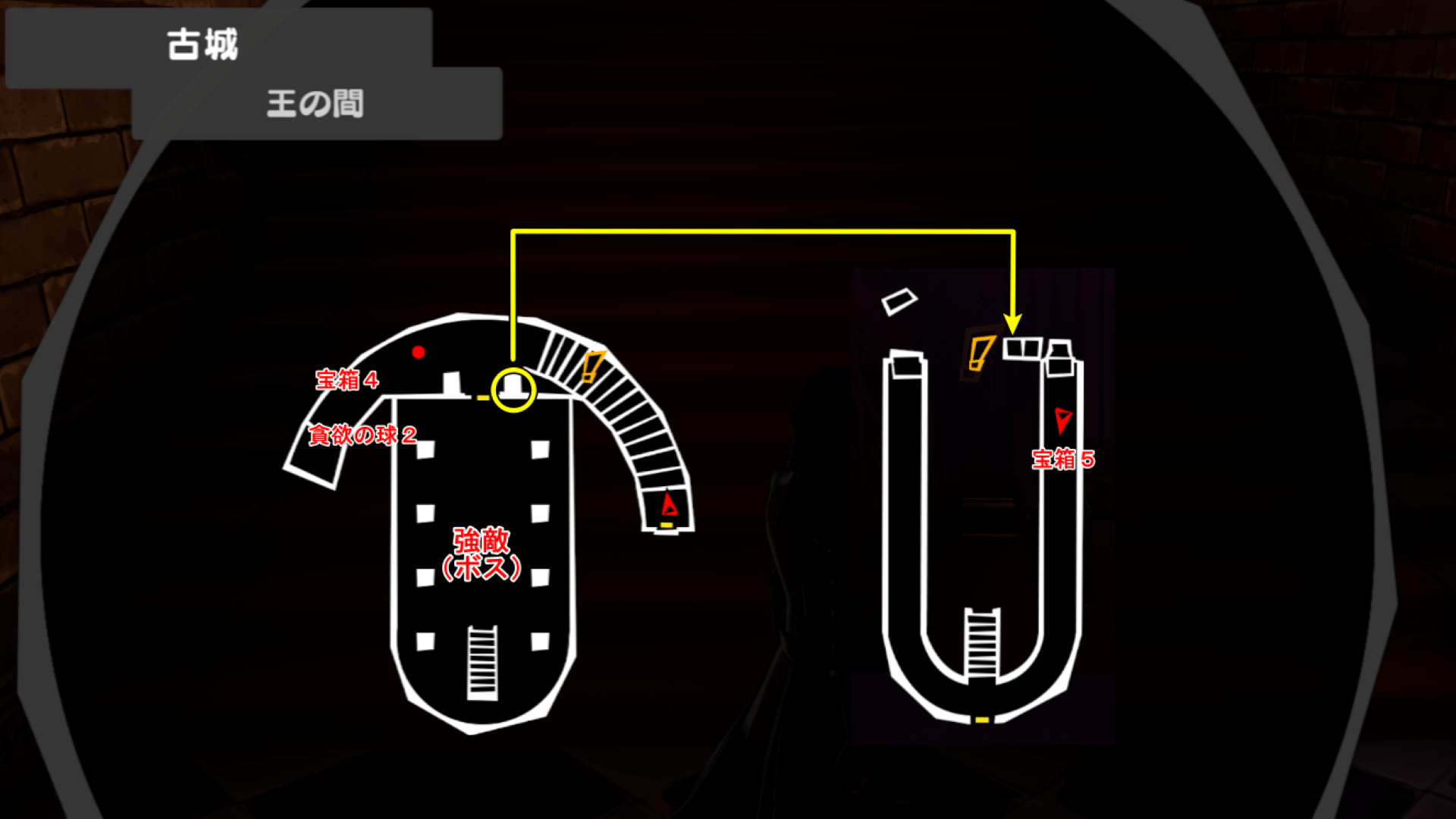 宝箱×3,貪欲の球2,強敵1隠し部屋の中 |