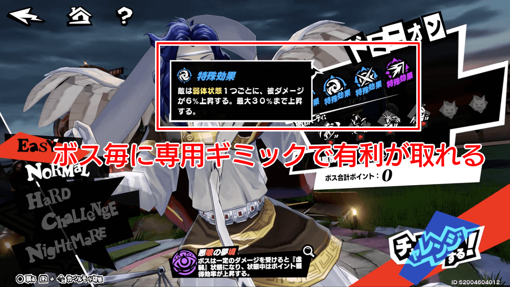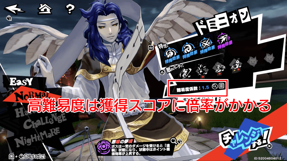閼兇夢の扉は一度に2種類用意されるが、片方の編成で使ったキャラ/ペルソナは、もう片方のボスに対して使用できない。ハイスコアを目指す場合は、キャラ8人とペルソナ6体の育成が必要だ。