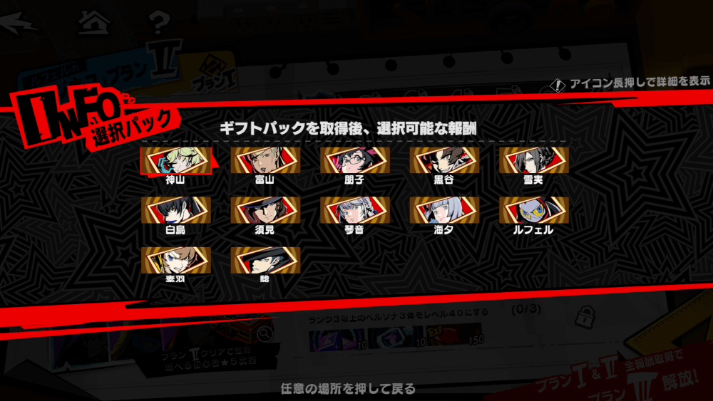 プランの全ミッションをクリアすると、星5怪盗や星5武器の選択権を入手できる。星5キャラを入手できる貴重な機会なので、パーティ編成やキャラの入手状況に合わせて慎重に選ぼう。