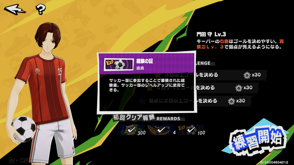 | 2 | PKのミニゲームで3回以上ゴールを決める・サードアイを起動すれば難易度は下がる |