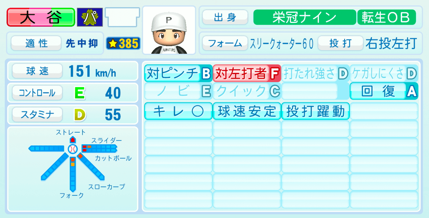 | 対ピンチB | 打たれ強さD |
