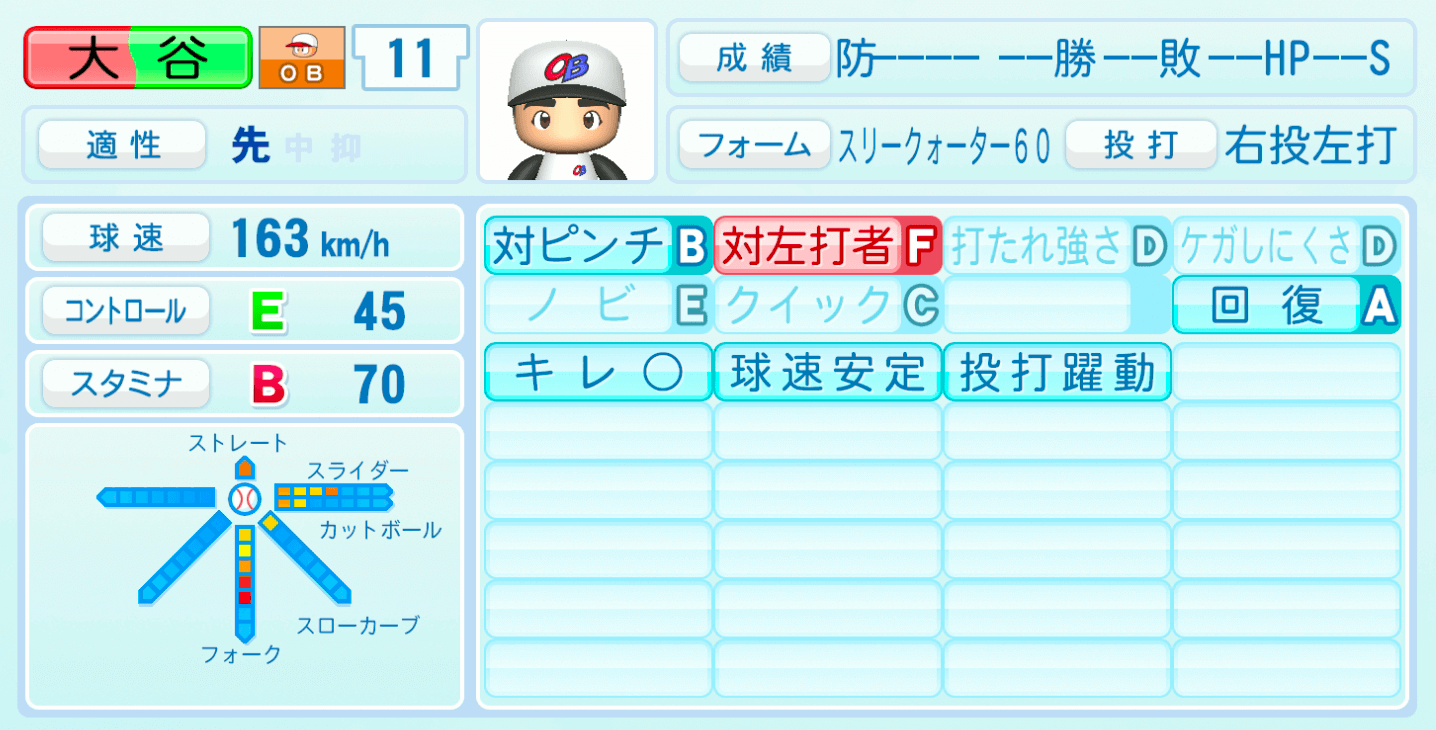 | 適性 | 先 | 球速 | 163km/h |