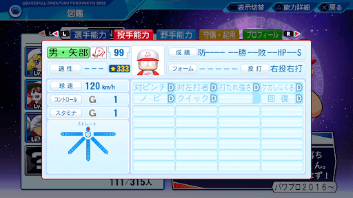 | スキル | 【ピッチャーお助けスキル】 味方に対ピンチA、打球反応◯、勝ち運 |