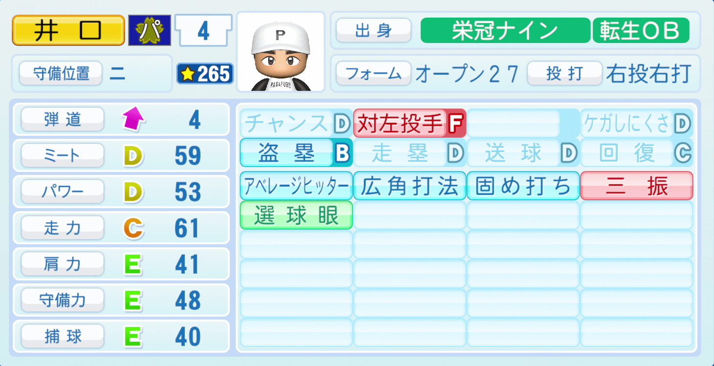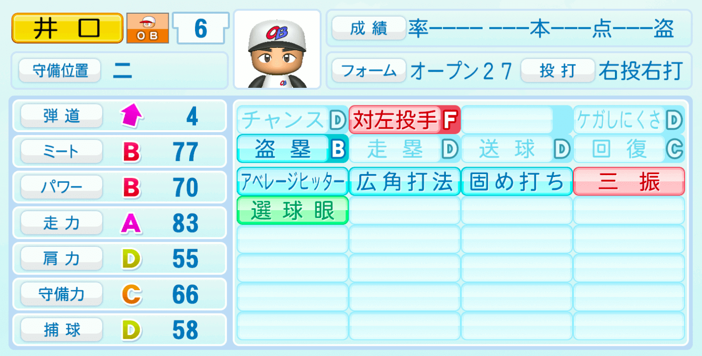| 盗塁B | 走塁D |