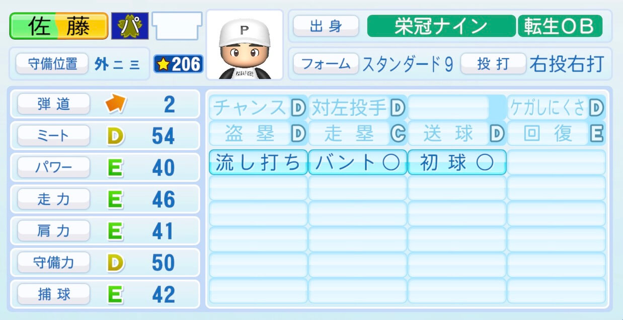 【パワプロ2022】佐藤友亮の選手・特殊能力と転生情報|OB