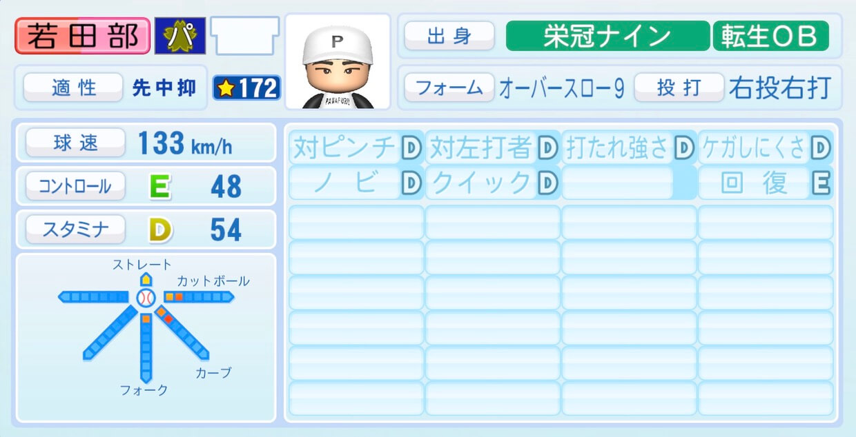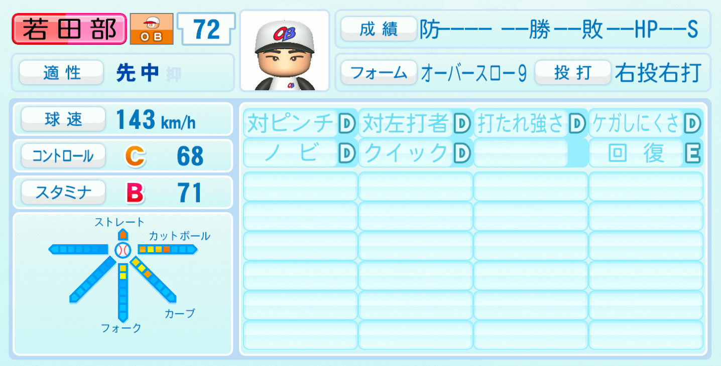 | 適性 | 先中 | 球速 | 143km/h |