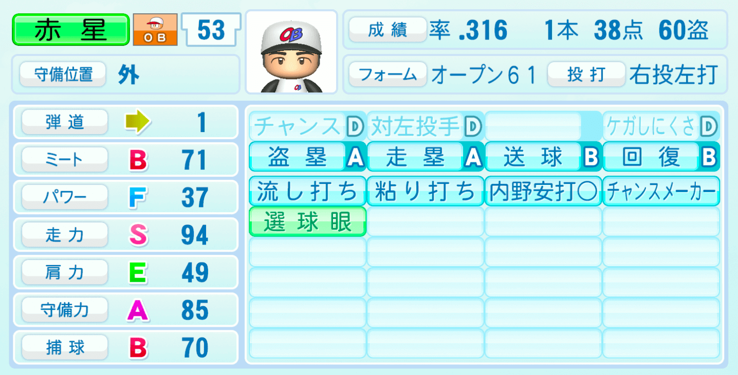 | ケガしにくさD | 盗塁A |