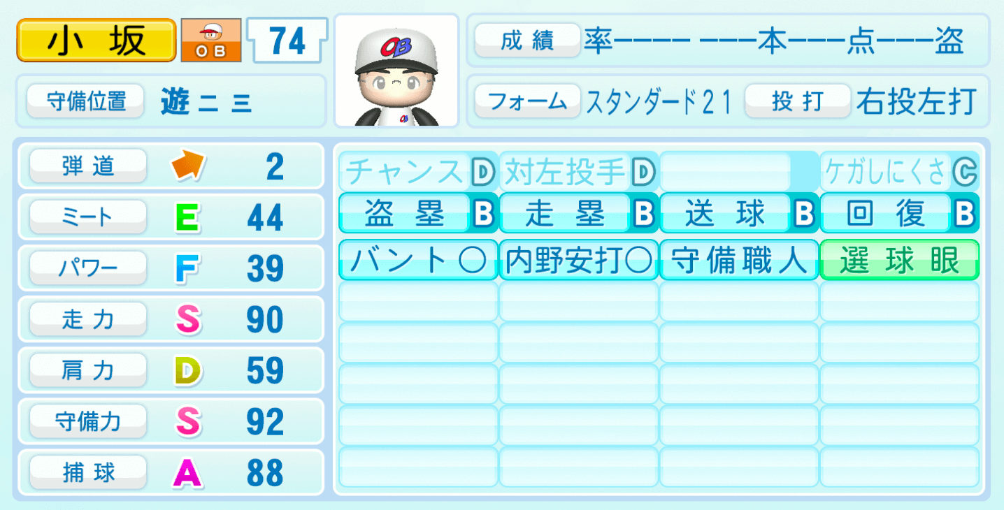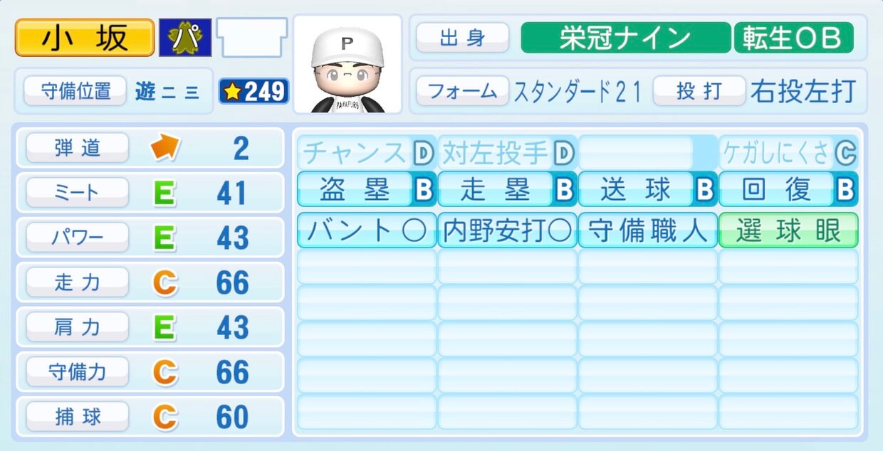 【パワプロ2022】小坂誠の選手・特殊能力と転生情報|OB