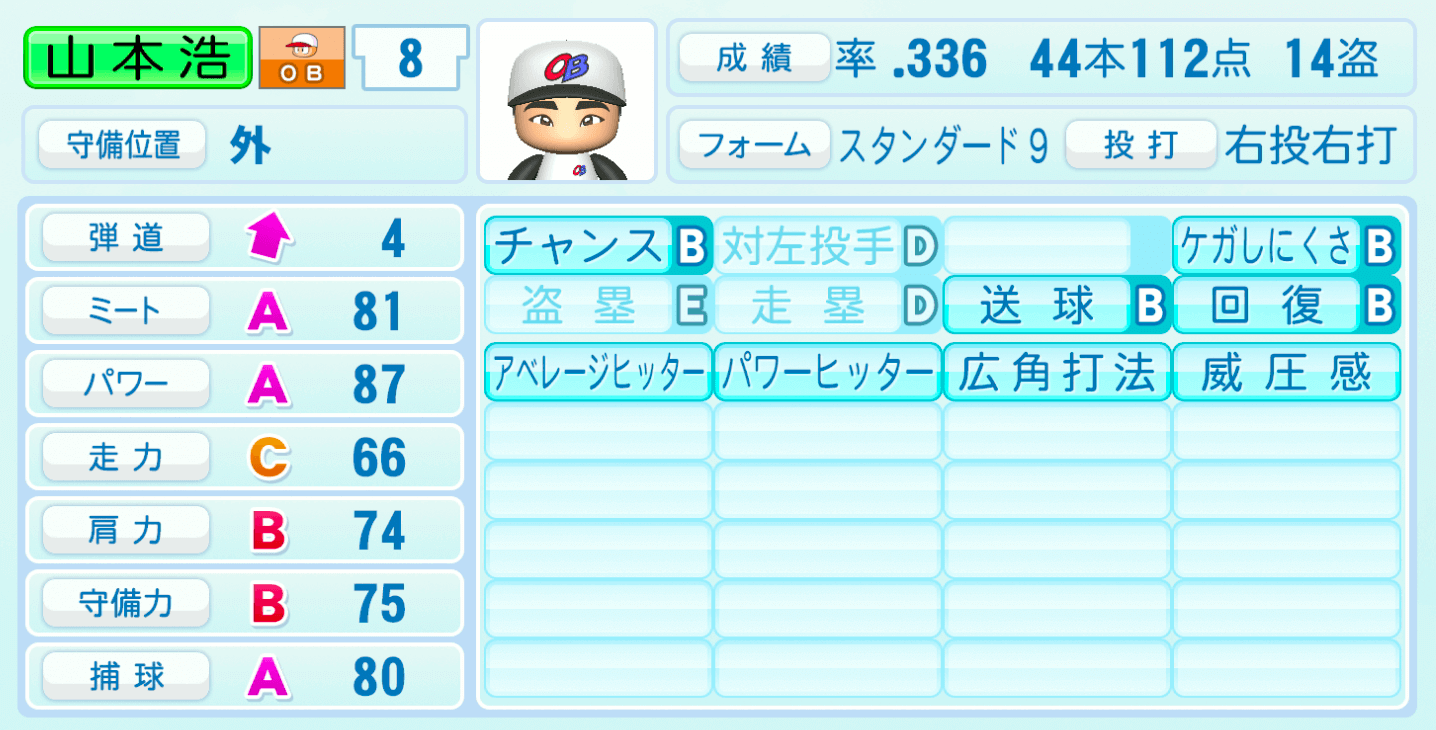 | ケガしにくさB | 盗塁E |