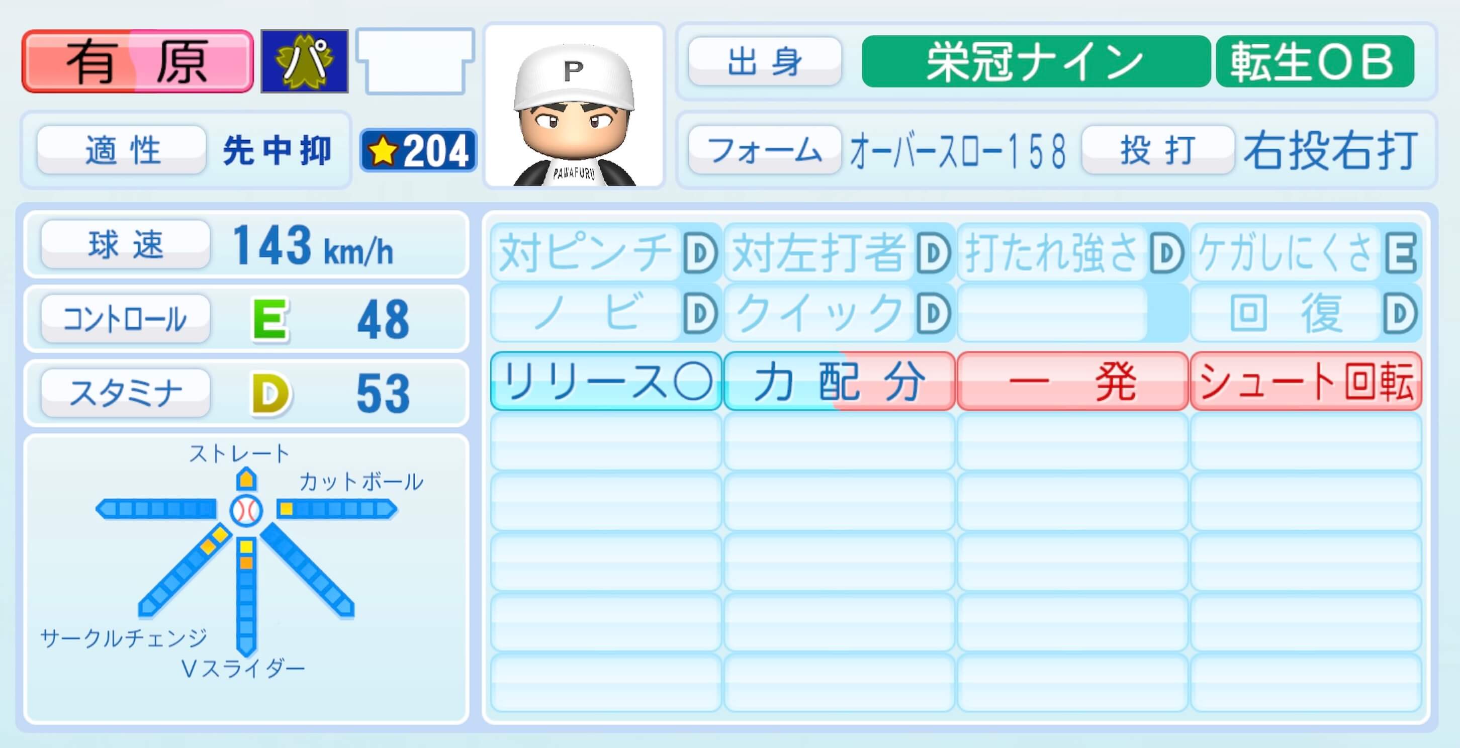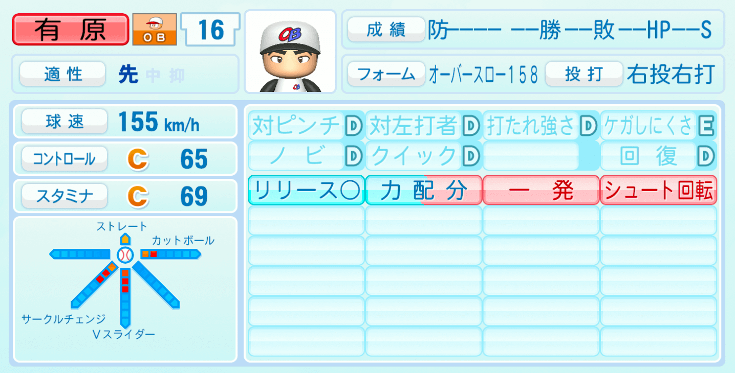 | 適性 | 先 | 球速 | 155km/h |