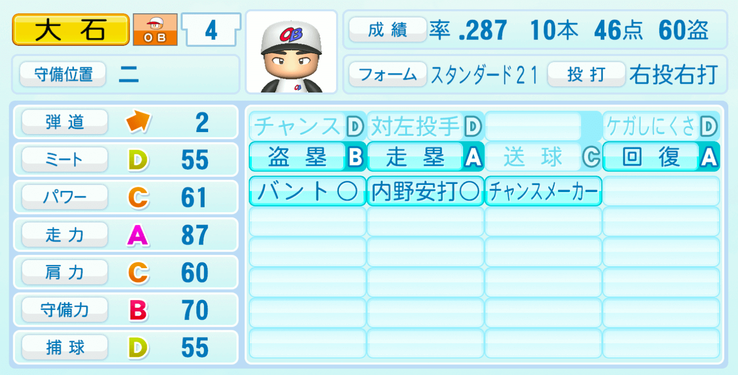 | ケガしにくさD | 盗塁B |