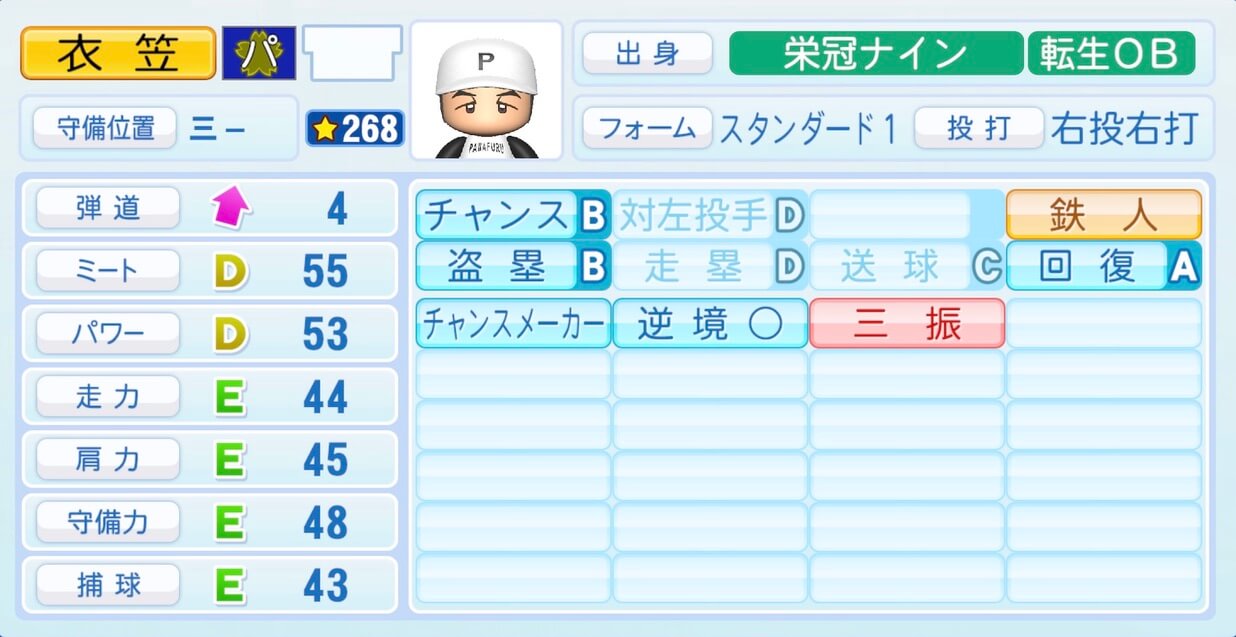 | 守備位置 | 弾道 | ミー | パワ | 走力 | 肩力 | 守備 | 捕球 |
