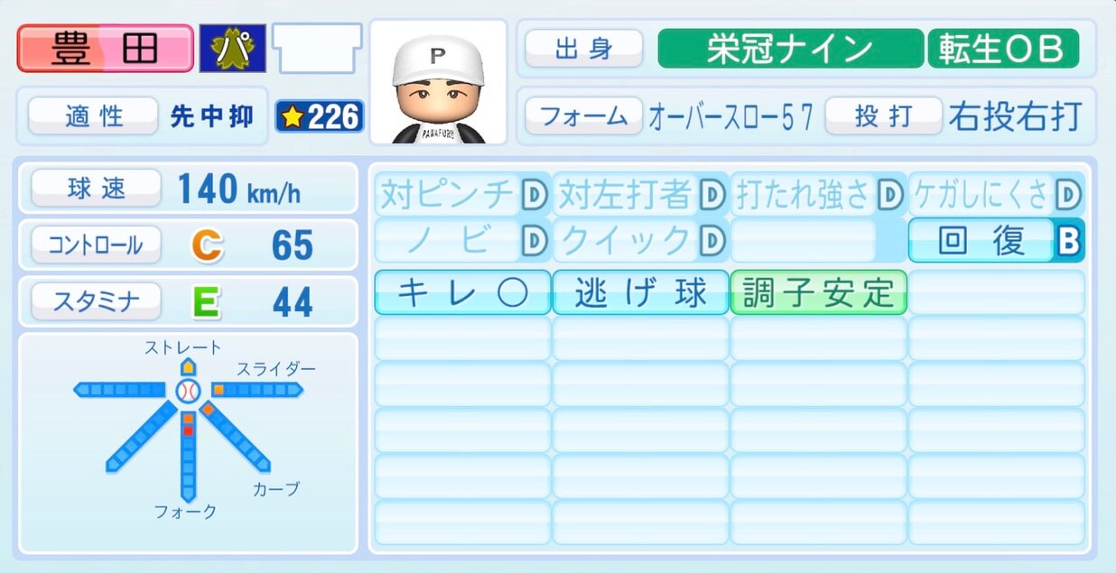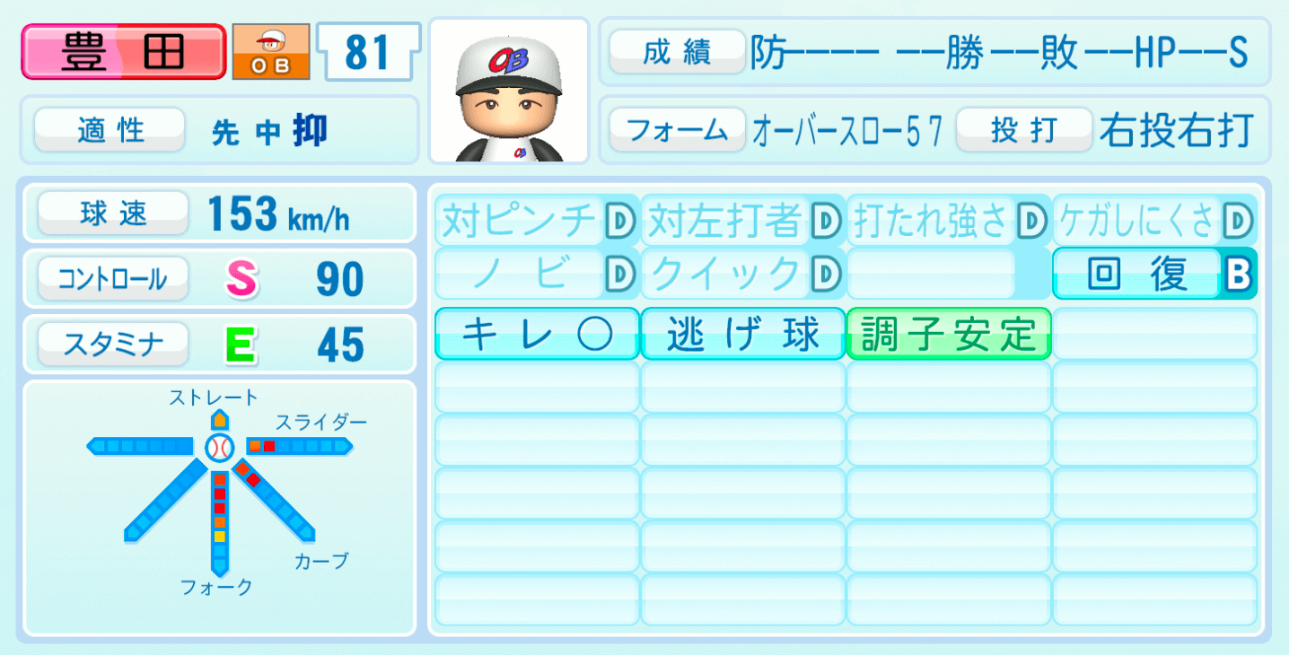 | 適性 | 抑/先中 | 球速 | 153km/h |