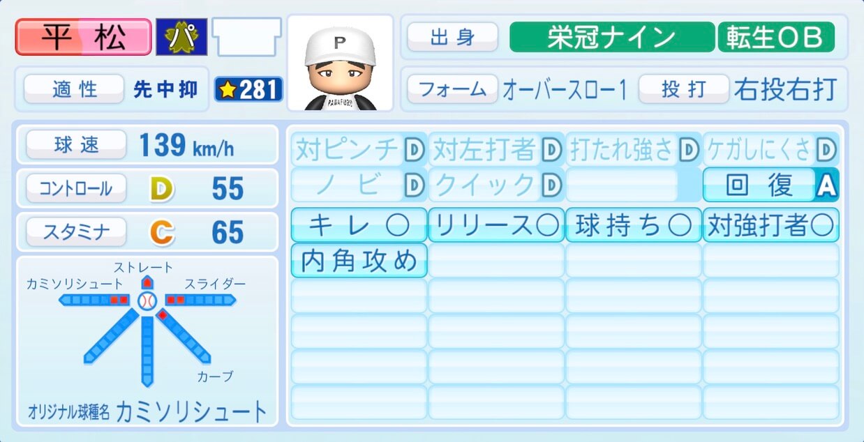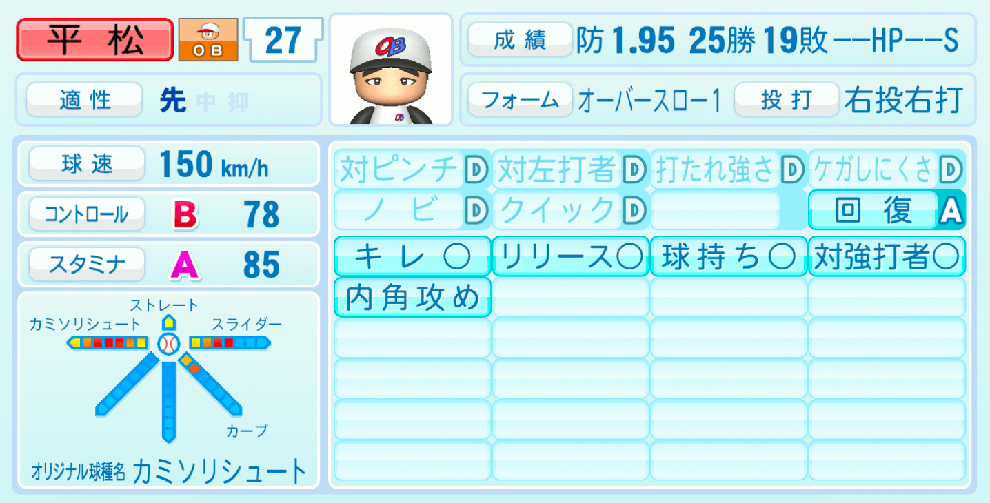 | 適性 | 先 | 球速 | 150km/h |