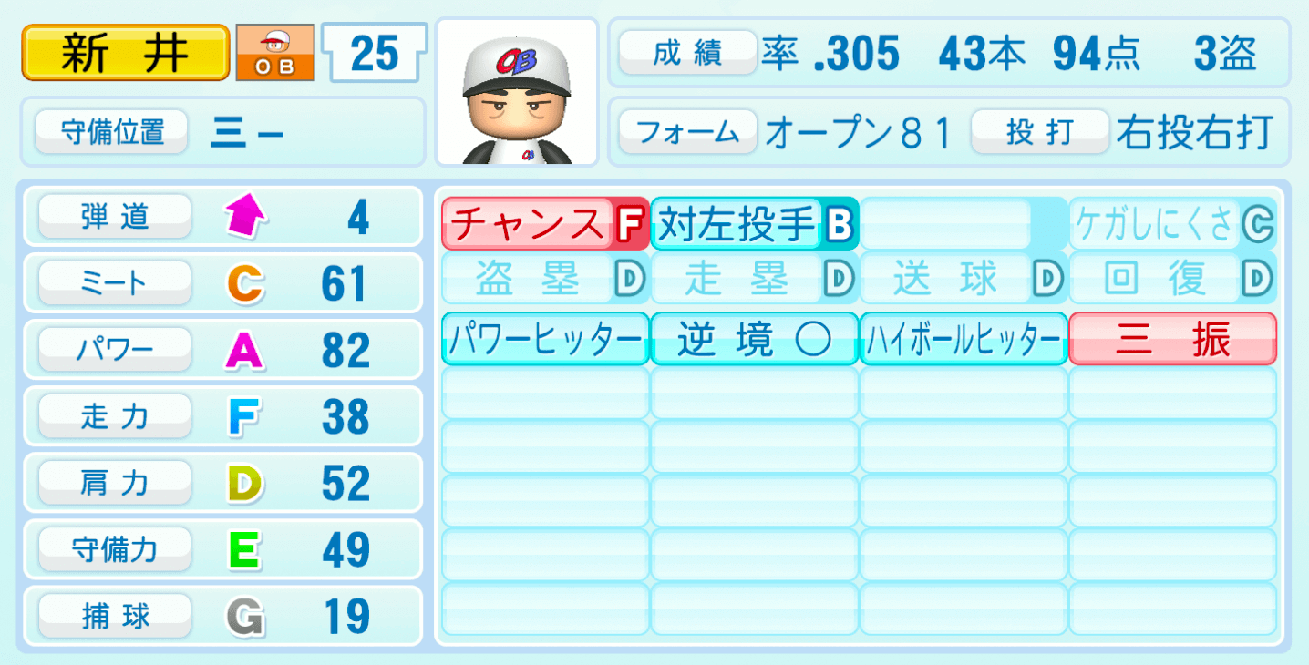 | 対左投手B | ケガしにくさC |
