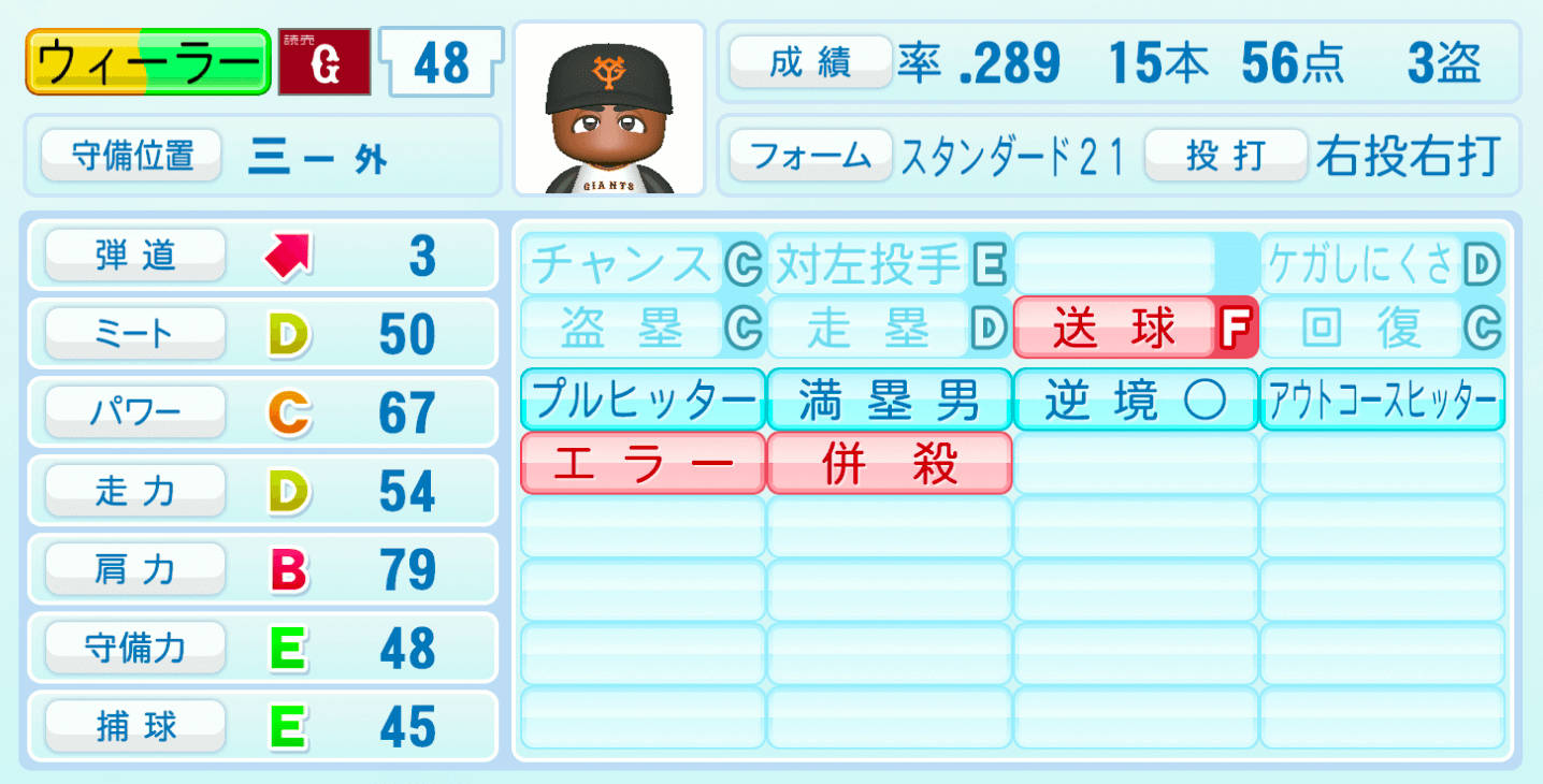 【パワプロ2022】ゼラス・ウィーラーの選手・特殊能力と転生情報|巨人