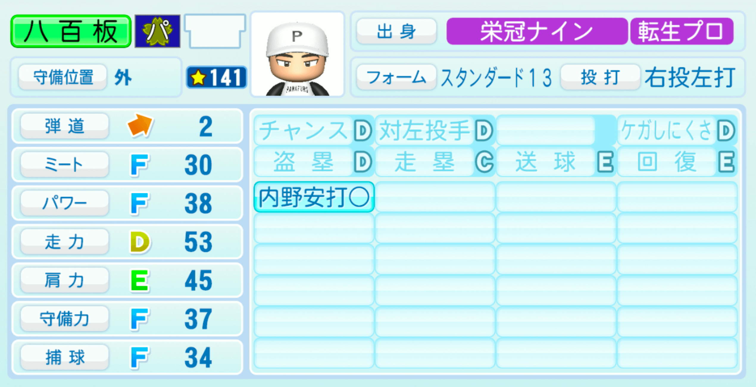 | ケガしにくさD | 盗塁D |