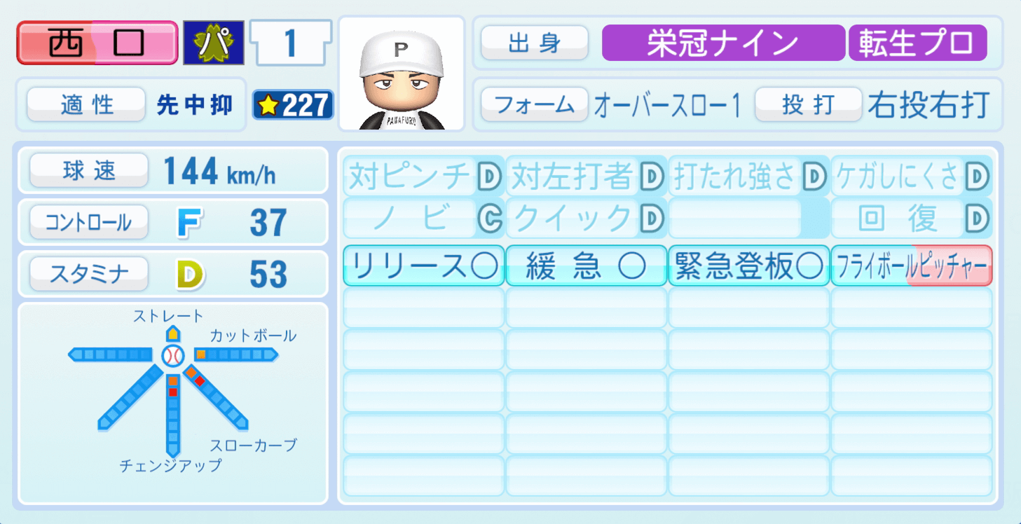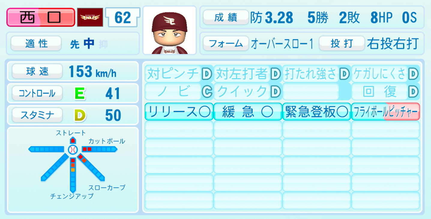 【パワプロ2022】西口直人の選手・特殊能力と転生情報|楽天
