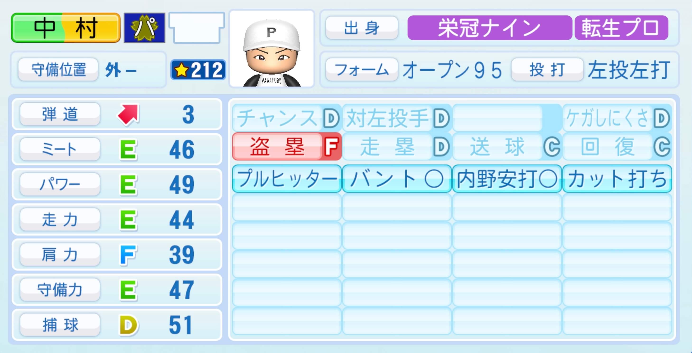 | ケガしにくさD | 走塁D |