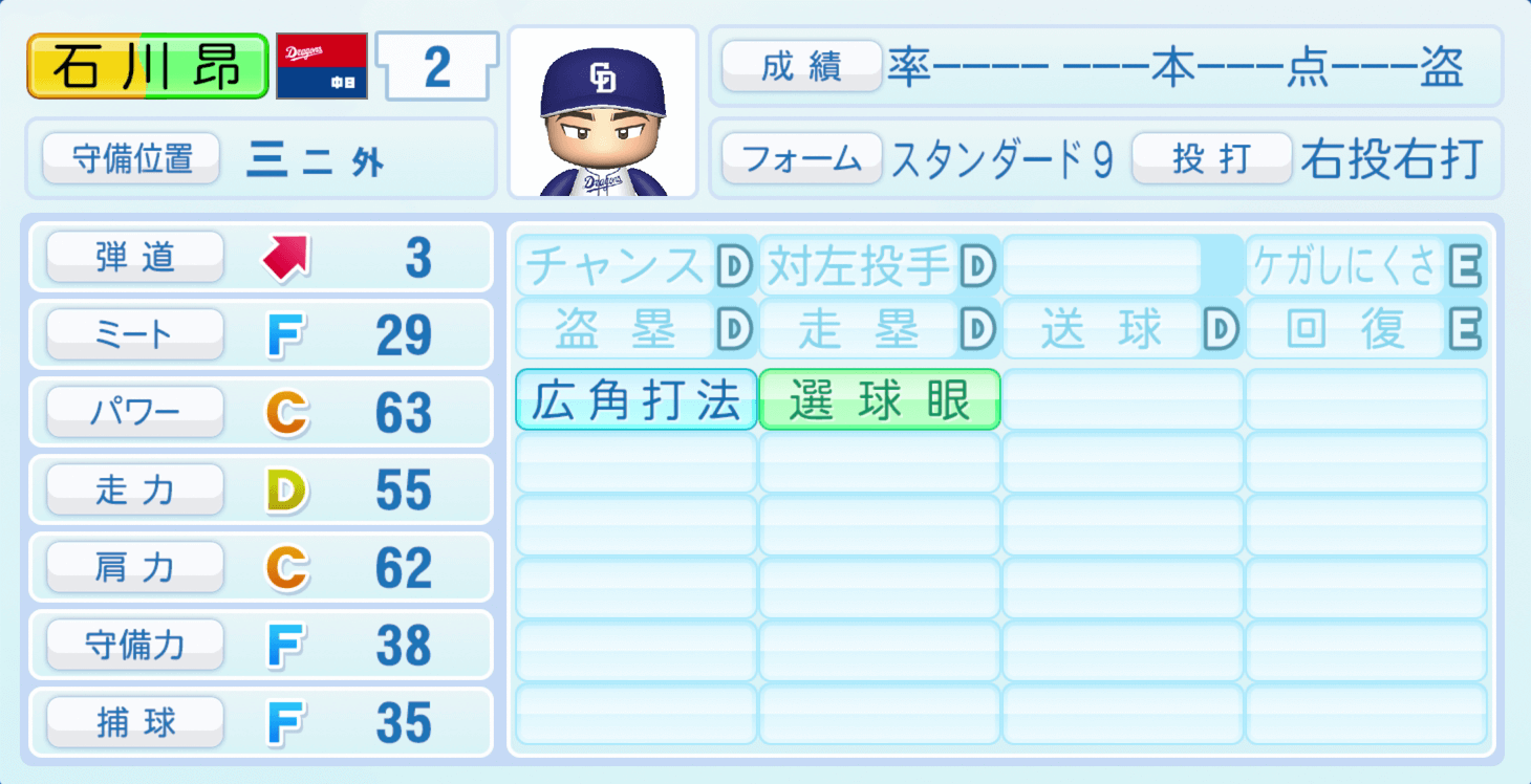 | ケガしにくさE | 盗塁D |