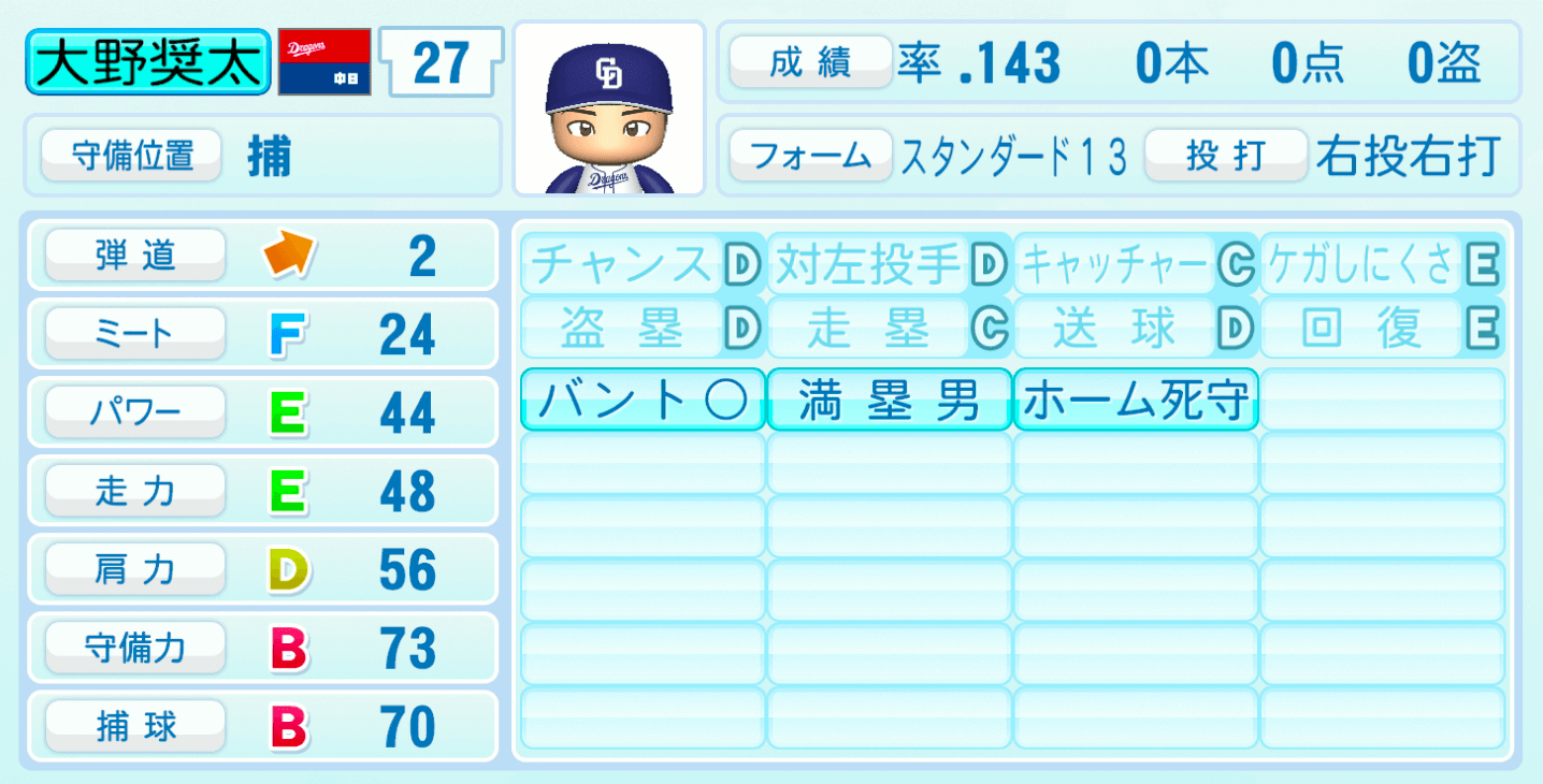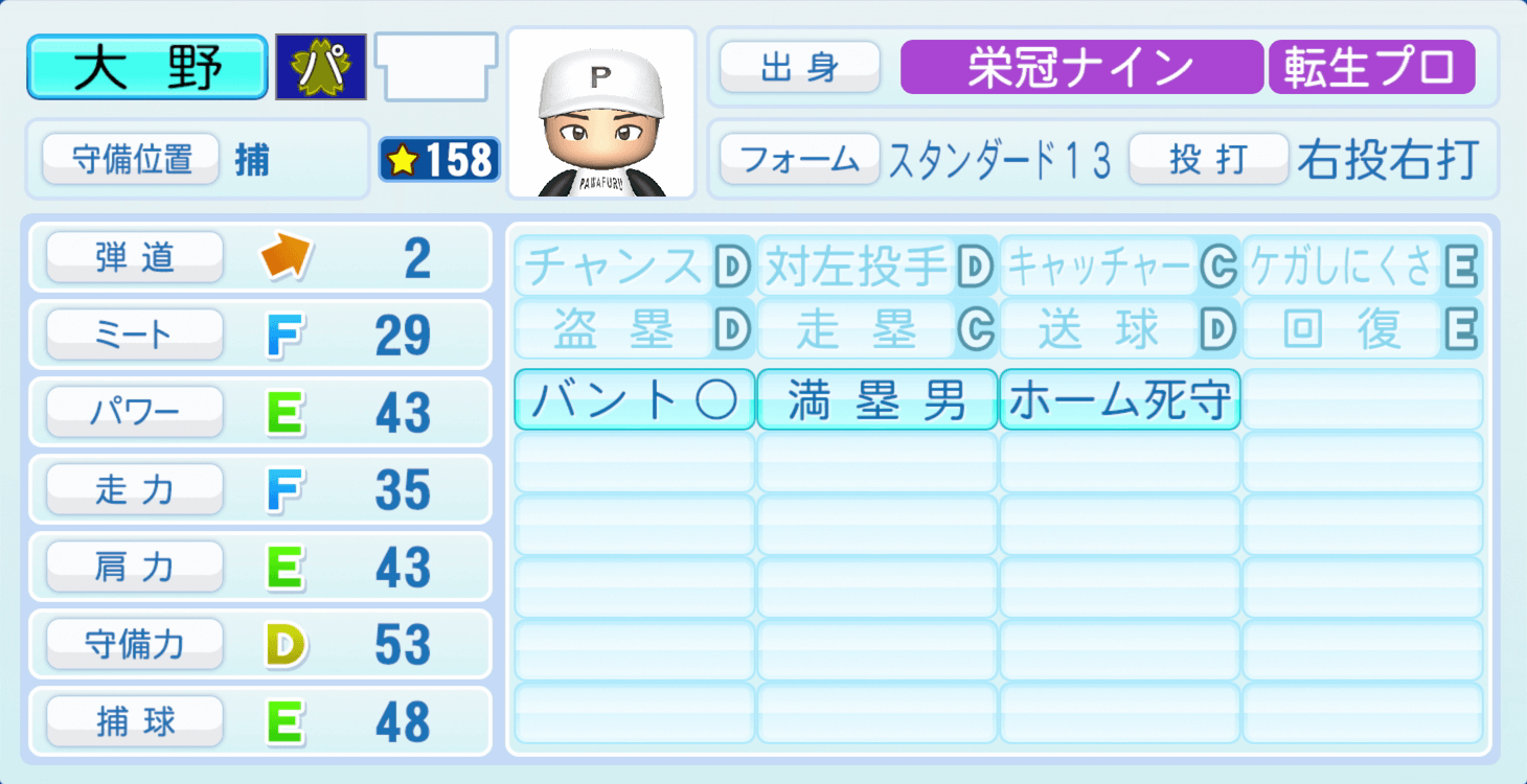 | キャッチャーC | ケガしにくさE |