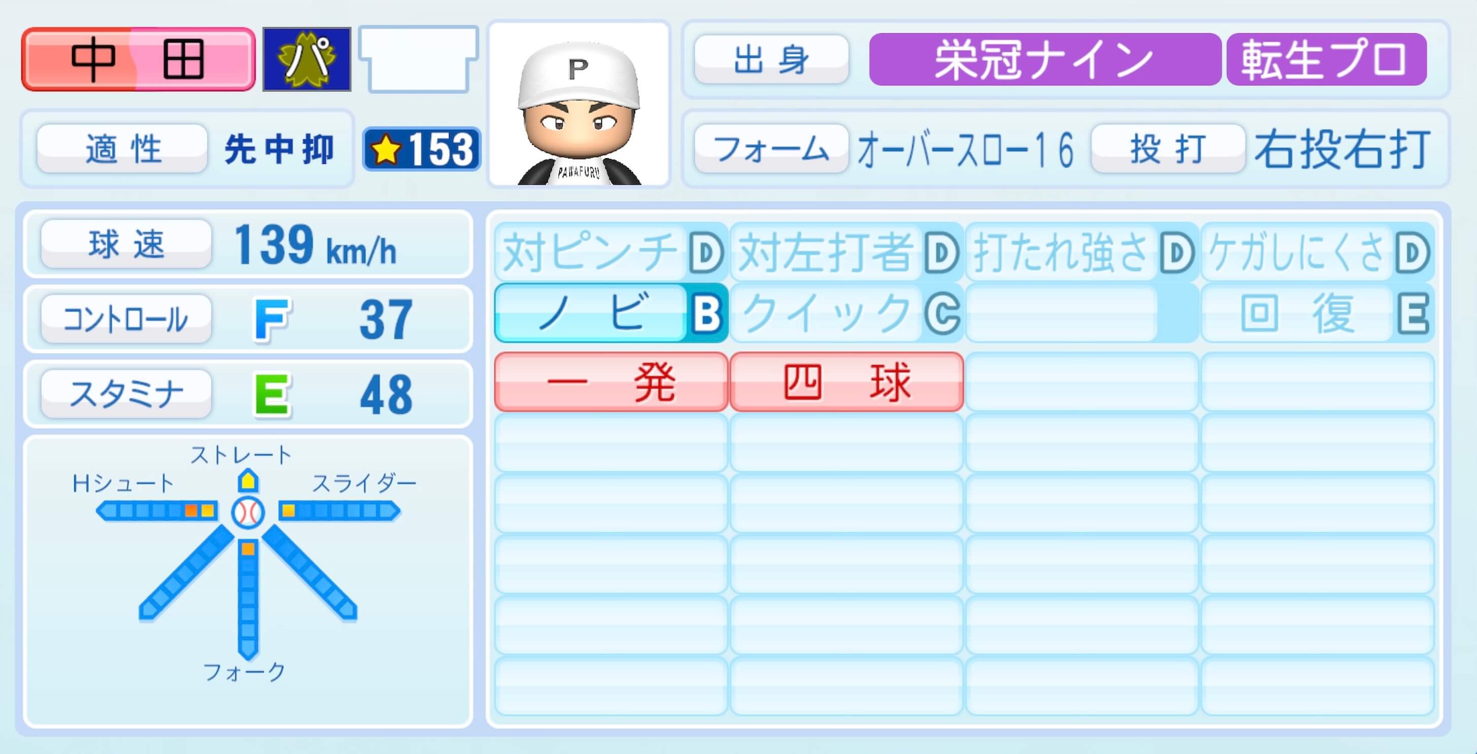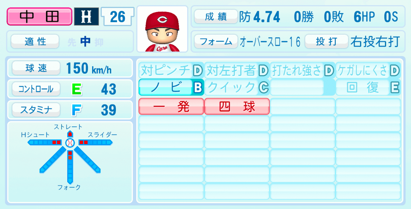 | 適性 | 中/- | 球速 | 150km/h |