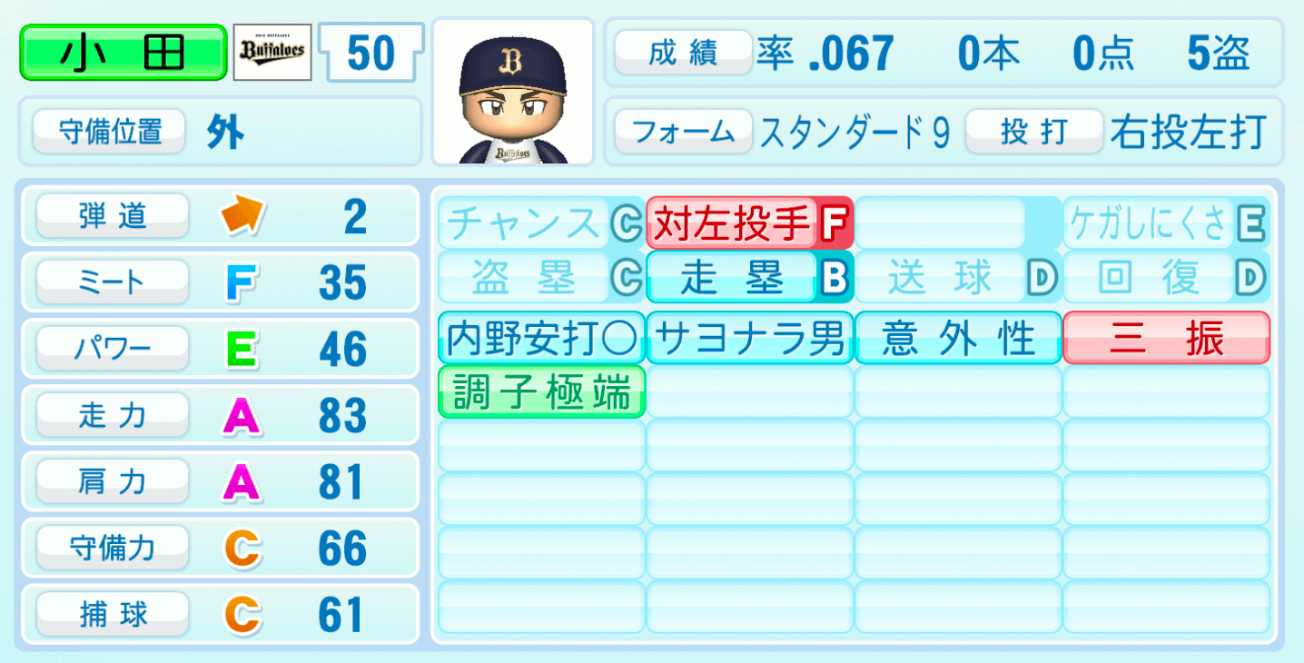 | 盗塁C | 走塁B |